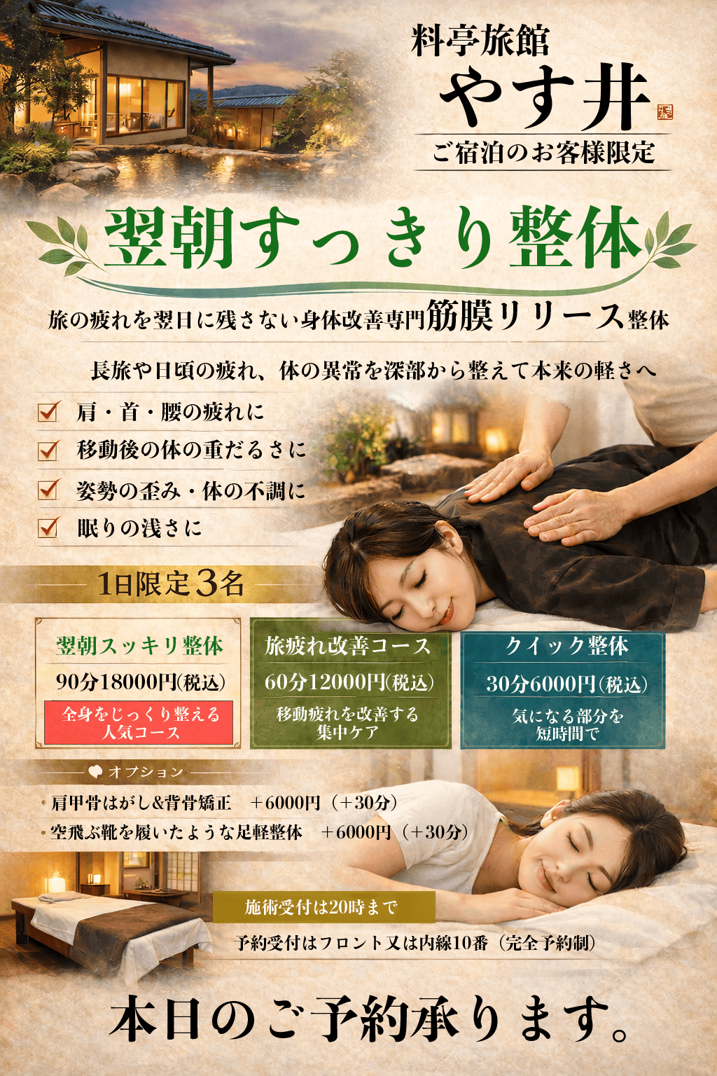 どうぞ、やす井での夜をゆったりとお過ごしくださいませ。